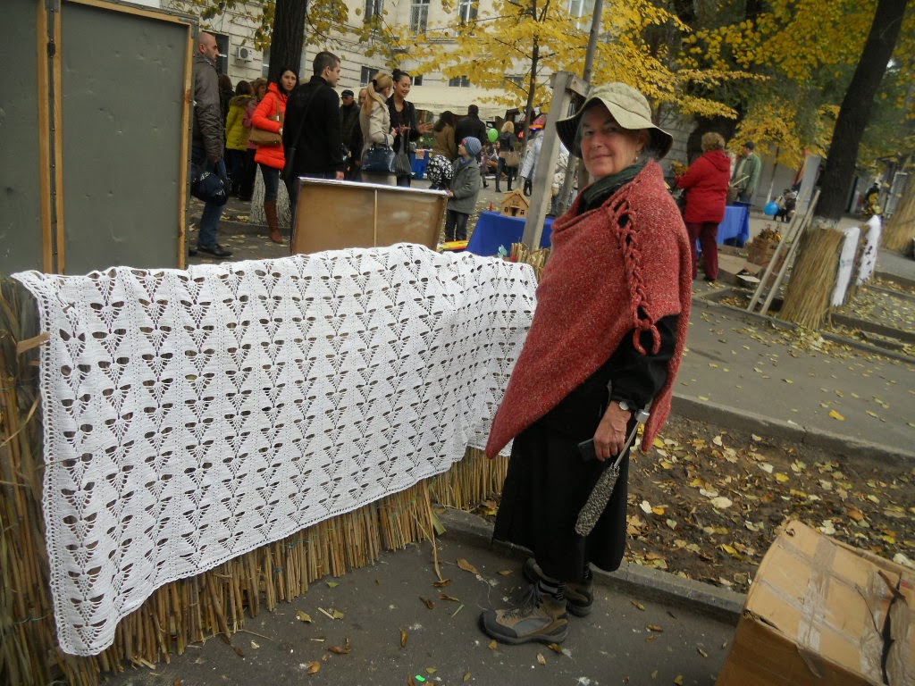 Well the final stop on our All Modova Week, was the capital city Chisinau. You can see a picture of the Hotel Cosmos where we spent our nights. It's the tall white building in picture two. The timing couldn't be more perfect for being in Chisinau. It was it's Hramul Day. That's the specific holiday for the city itself. Ad Multi Ani Chisinau! The whole boulevard of Stefan cel Mare was closed off to traffic and it was one giant street fair. There were dancers and singers and vendors. Phyllis was admiring some of the intricate crochet work. And then the word carver gave her a big Moldovan welcome. Some other sites that were close to our hotel was the new shopping mall Atrium. It's the giant white building with wings. Inside the mall was this modernistic purple ear canal. Just down the street was a second hand market. The official one is called the Locomotive Second Hand Market. But just before it is something known as the Russian Piata (market) where individuals just lay out what they have to offer like a flea market. Well our final dinner was at a very nice place called the Café Jiraffe. It featured itself as a "fusion restaurant". Well that's about the wrap up of the All Moldova Week. It was very nice to share my Moldovan experience with family. I bid them La Revedere.